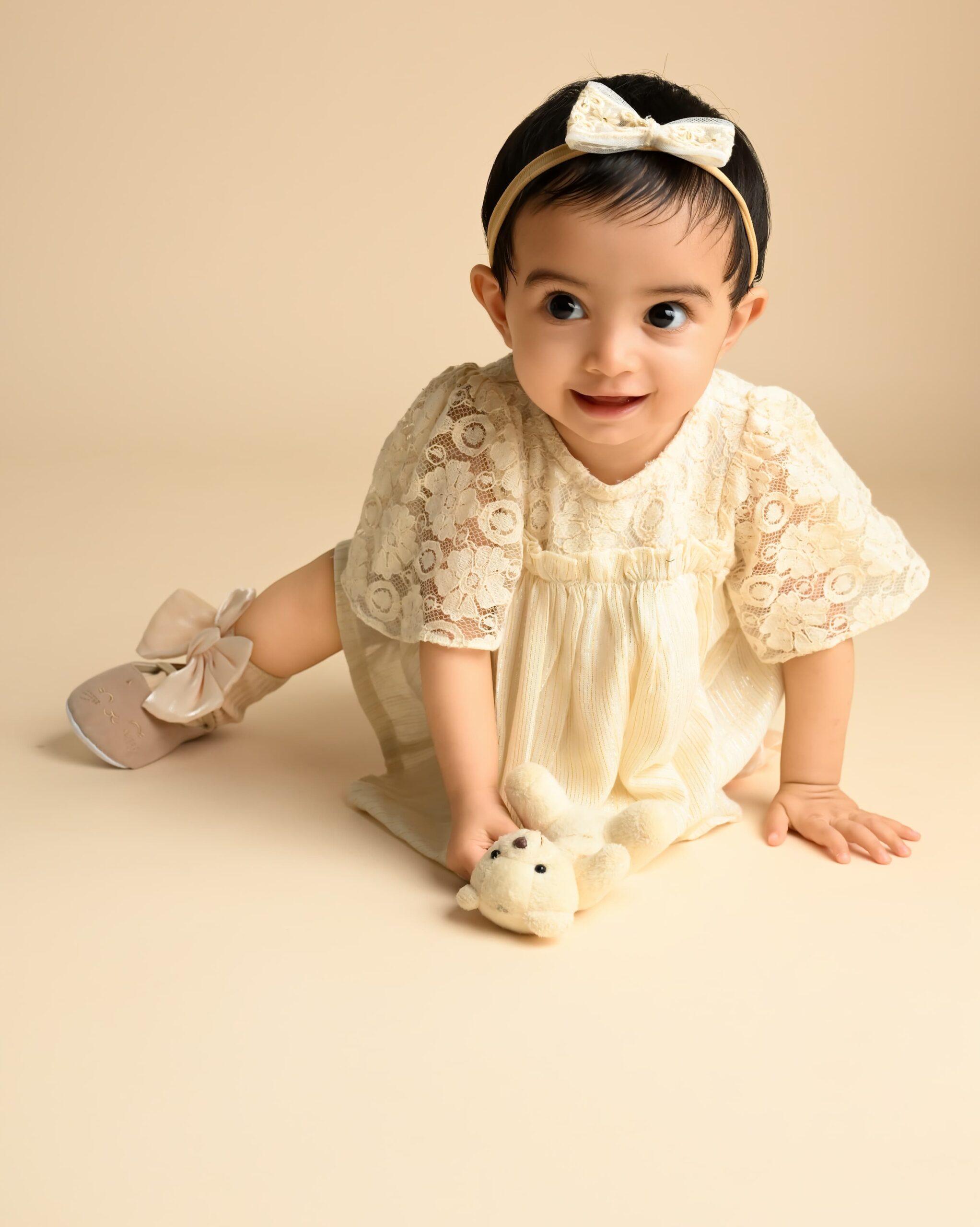 Delicate and dreamy, the Lace Blossom Dress is crafted with soft ivory lace. With flutter sleeves and a classic silhouette, this dress is perfect for birthdays, weddings, or sweet photo moments. A timeless piece that brings charm and grace to every occasion.
